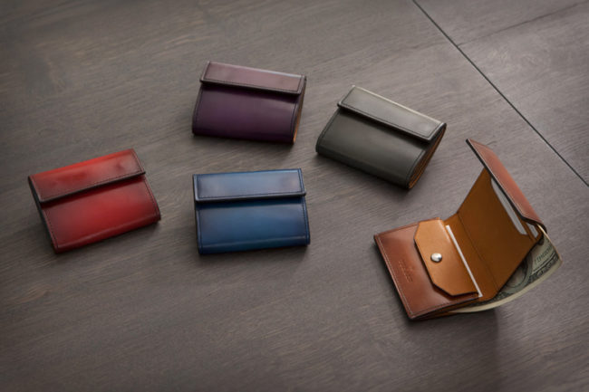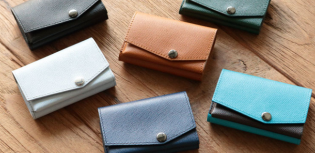 この財布の特徴としては、三つ折にする形でホック止めの作りとなっているものが多く、ユニークなデザインのものが多かったりします。また「極小財布」に比べると面積が大きくなる分、上質な革を使っていると高級感が増すため、素材の良さが映えます。