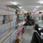 この画像の机の上に山のようになった本たちは、どのような状況かと申し上げますと、検品を完了して、査定待ちとなった本たちの姿です。撮影している間にも短期スタッフの活躍により、次々と列が増えていっております。