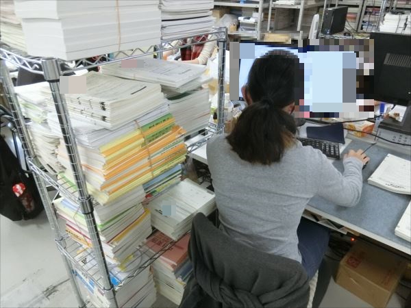 今は大学受験の模試セットの検品中です。