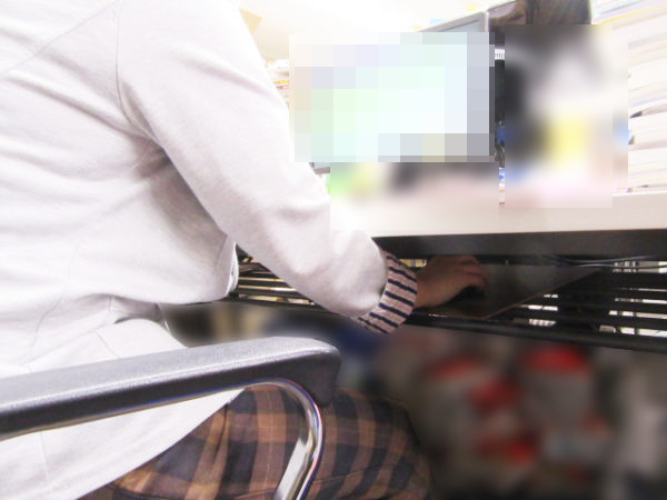 どっさり本を手元に置いて作業する部署なのでマウスが隠れているほうがむしろやりやすいとの事