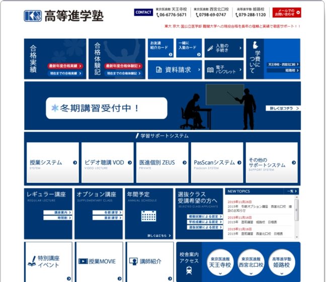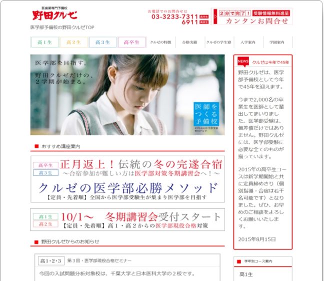新たに『高等進学塾』と医学部専門予備校から『野田クルゼ』の基本情報紹介ページを作成しました。