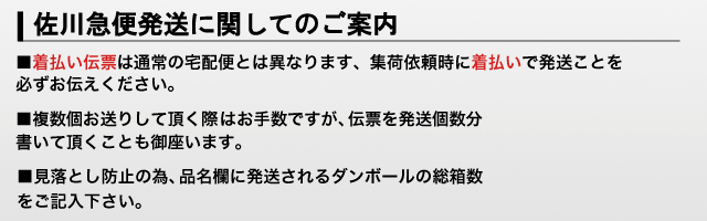 指定の配送業者(佐川急便)の着払いでお送り下さい。