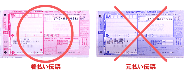『指定配送業者』以外での着払いでの受け取りはしておりませんので、ご留意ください。